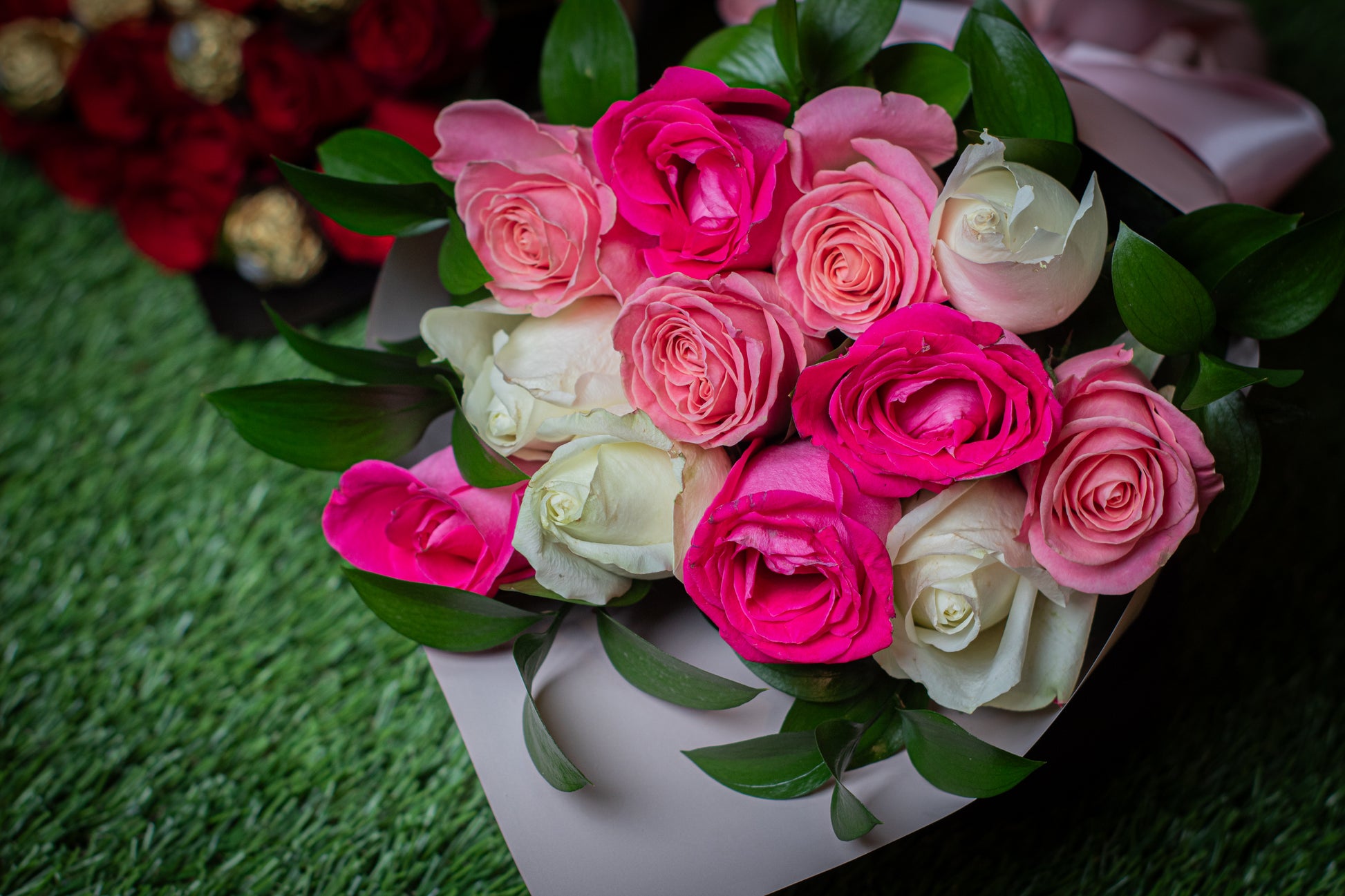 Ramo de una Docena Rosas Rosas en varios tonos.